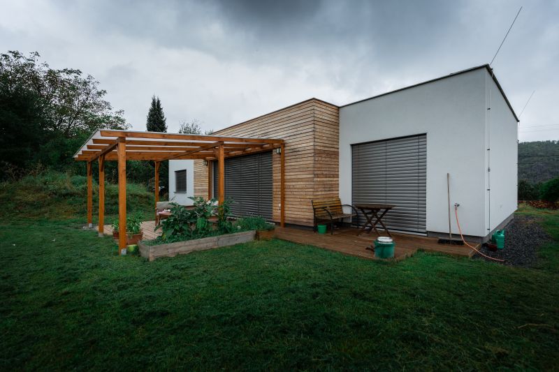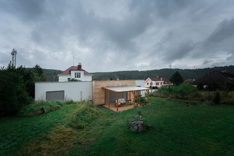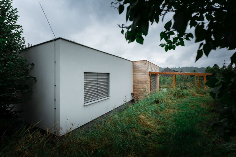 Dům je postaven na druhém konci zahrady, která patří rodičům jednoho z investorů. Sami zde také bydlí. Konstrukce domu je navržena jako difuzně uzavřená z KVH hranolů, opláštěná sádrovláknitými deskami a zateplená polystyrenem tl. 200 mm. Dům má plochou střechu a částečný obklad fasády ze dřeva sibiřského modřínu. Dům krásně zapadá do původní zahrady, což bylo hlavním cílem investorů.