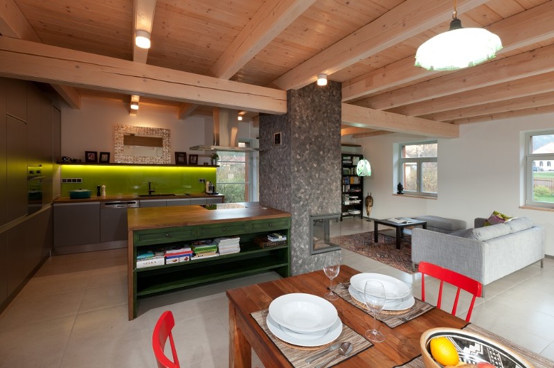 „Desítky rozhovorů s mými klienty, kteří chtějí postavit rodinný dům, potvrzují, že je nám lidem až na drobné výjimky archetypálně dáno, že se v prostoru, kde je na stropě přiznaná konstrukce pohledových dřevěných trámů cítíme příjemněji a útulněji, než pod bílým sádrokartonovým stropem,“ doplňuje Tomáš Klanc.