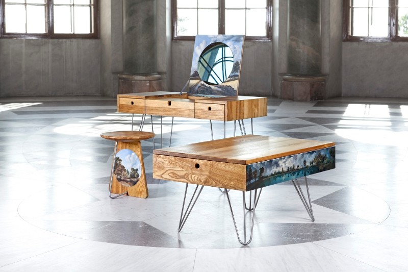 Kolekce nábytku podle návrhů Romana Kvity je vyrobená z masivního jasanu s výraznou kresbou jádrového dřeva a doplněná podnožemi z kartáčované nerezové oceli. Pro olejovou malbu zvolil Dominik Běhal tradiční podklady jako je klihová impregnace a křídový šeps, ostatní povrchy jsou ošetřeny olejem s pigmentem.