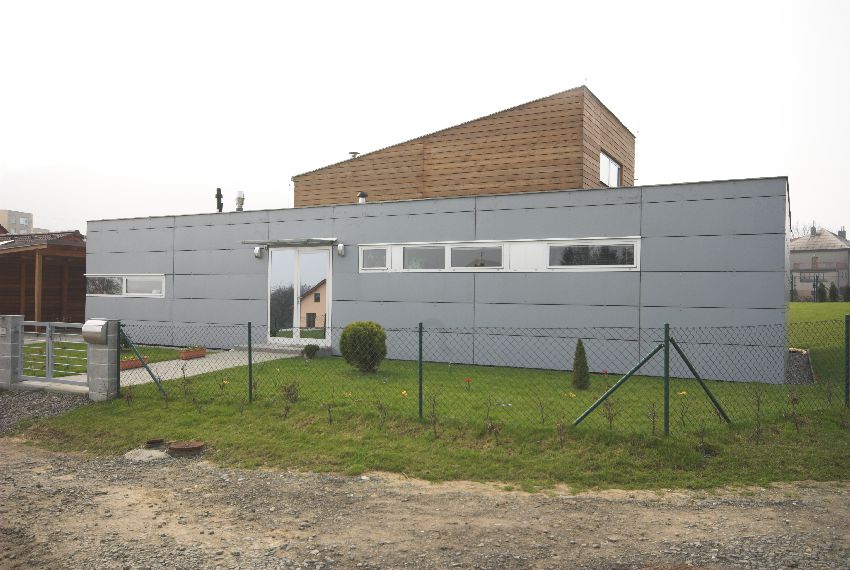 Asi každý, kdo někdy stavěl rodinný dům, se nevyhnul nějakým komplikacím nebo problémům. My jsme jich byli do značné míry ušetřeni díky montované technologii – sendvičové panely se podle projektu vyrobily továrně a na místě se jenom smontovaly, takže jsme se mohli soustředit až na dokončovací práce. Zaujal nás obklad fasády cementotřískovými deskami se šedým nátěrem, které docela pěkně vyniknou v kombinaci s druhým obkladovým prvkem – modřínovými prkny. Napoprvé se sice obklad nepovedl a desky se začaly vlivem počasí kroutit, ale ukázalo se, že šlo o vadnou dodávku a firma reklamaci vyřídla rychle a bez problémů.