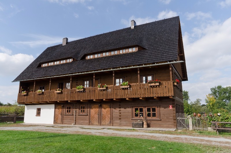 Dům, ve kterém bydlíme, je postaven podle původní historické dokumentace, v technologii jsme se snažili ctít tradici, ovšem museli jsme ji podřídit moderním požadavkům. A to zejména z hlediska požáru, protože každá novostavba musí splňovat dříve české, nyní naštěstí evropské normy. Obecně lze říci, že stejným způsobem přistupujeme i k výstavbě všech ostatních domů, které realizujeme. Ve spolupráci s odborníky na evropské normy jsme už naši technologii vyladili a realizace roubených staveb už je bezproblémová. Na střeše máme dřevěný šindel. Ve skanzenu bychom rádi časem ukázali všechny tradiční druhy krytin – pálenou tašku, lepenku a jiné.