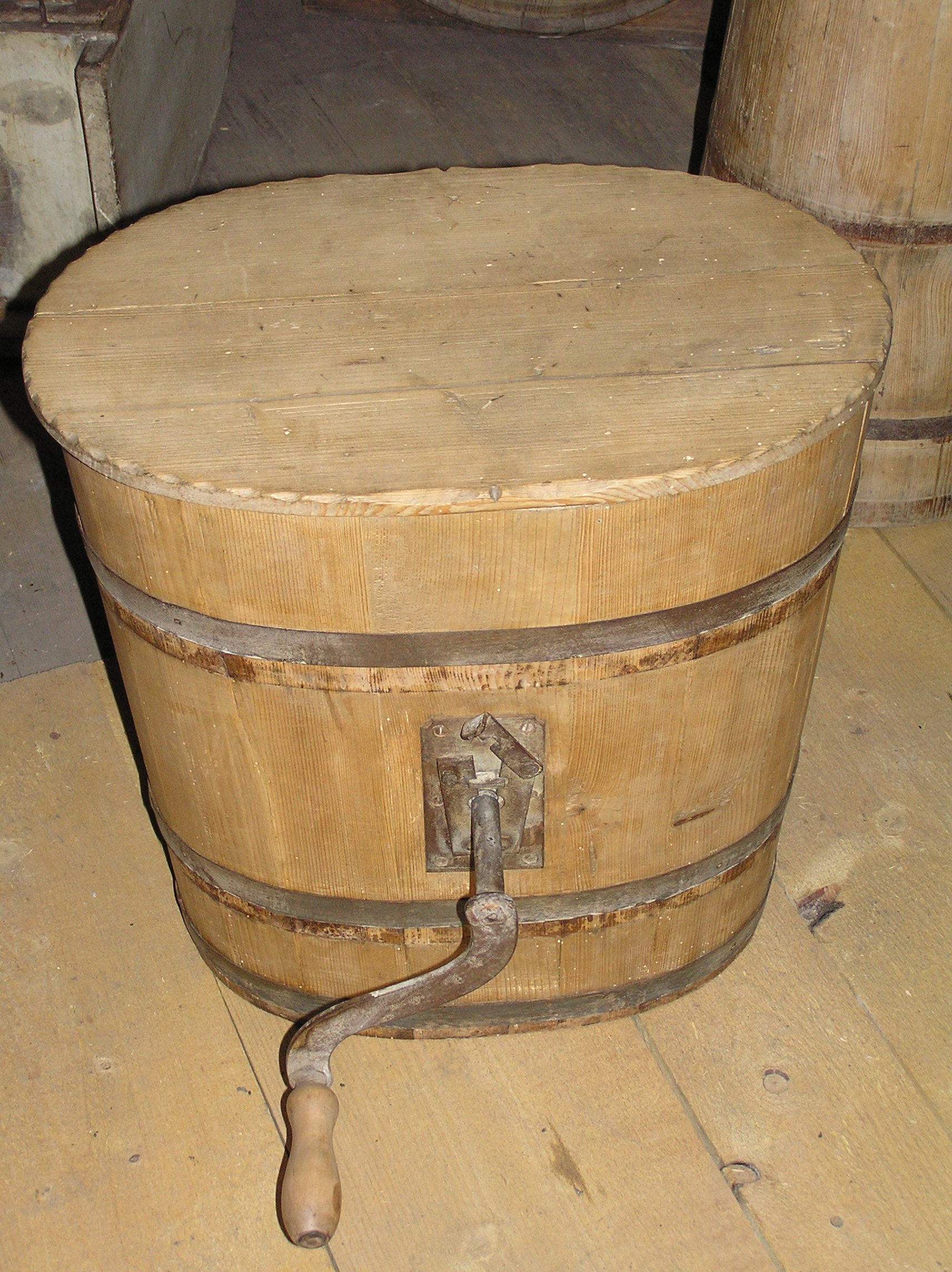 K čemu sloužil tento předmět? Mívala ho většina selských hospodářství na výrobu potraviny živočišného původu. Po domácku se vyráběla až do konce 19. století. Teprve vynález odstředivky v roce 1872 umožnil postupné zavádění průmyslové výroby této pochutiny.