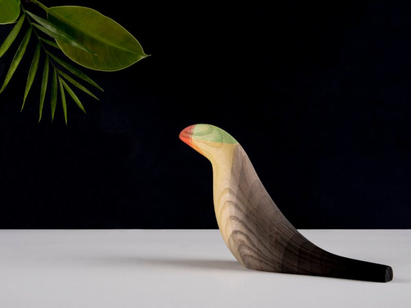 Dřevění ptáčci, jejichž předlohou je nejčastěji tukan nebo kolibřík, mají vždy pestré a kontrastní zbarvení.