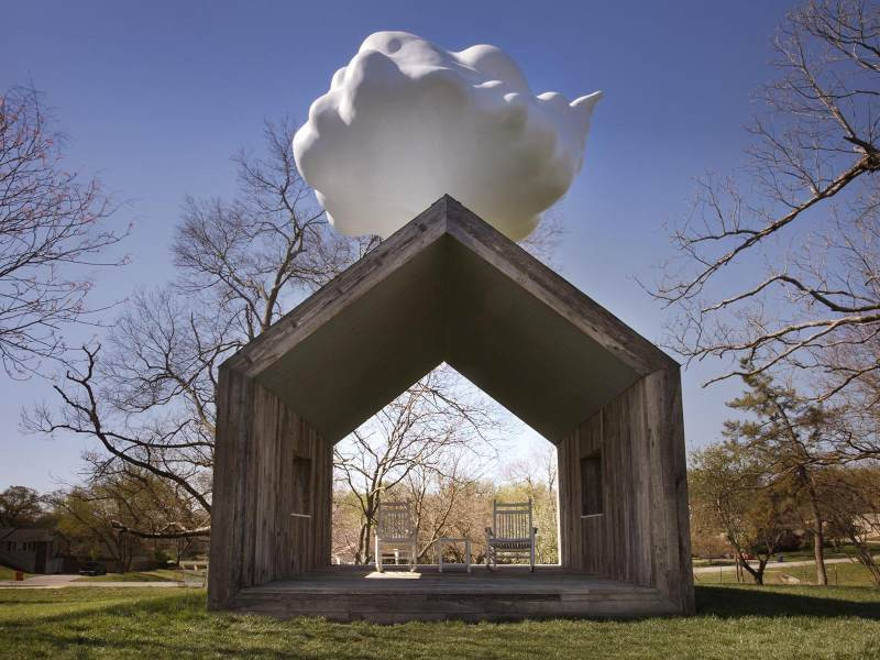 Americké designér Matthew Mazzotta má řešení – jeho Cloud House, postavený z recyklovaného dřeva a plastu, skladuje zachycenou dešťovou vodu v podzemní nádrži.