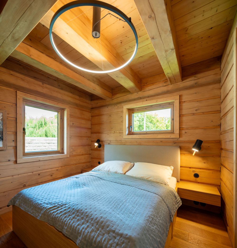 Moderní roubenka v trampské osadě