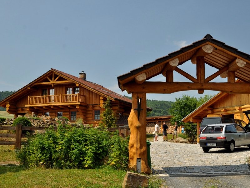 Moderní roubenka v trampské osadě
