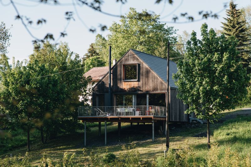Moderní roubenka v trampské osadě