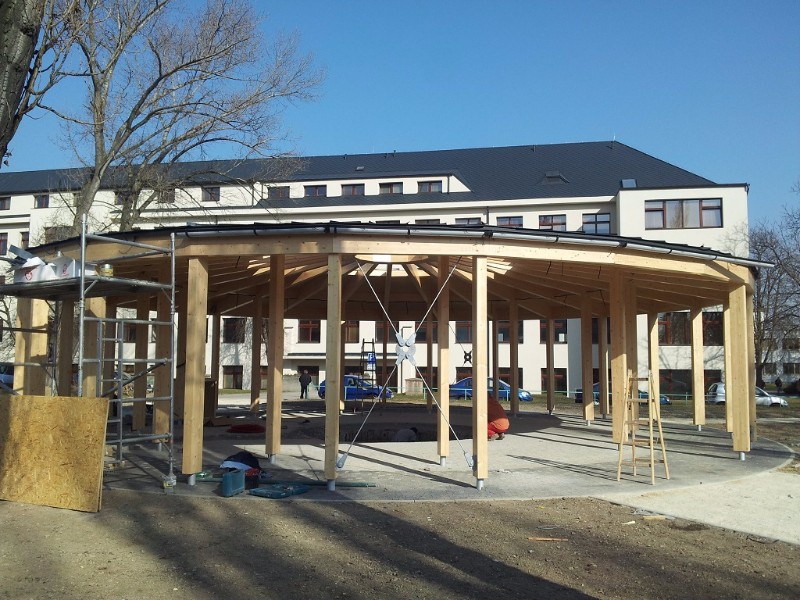 Váleční veteráni v Ústřední vojenské nemocnici v Praze mohou od letošního léta relaxovat v novém dřevěném altánu, který vznikl ve volném prostoru vnitřního areálu nemocnice. Zadáním pro architekty bylo vytvořit důstojné místo pro setkávání se přibližně padesáti osob s tělesným postižením.