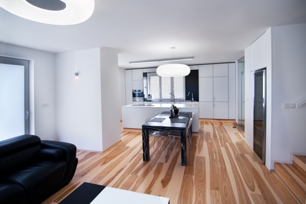 Dům s dispozicemi 4+KK na obytné ploše 140 m2 (užitková plocha je cca 170 m2) skrývá řadu zajímavostí. V hlavní části domu byla položena dřevěná podlahová krytina švédské značky Kährs v dekoru Jasan Gotland o celkové rozloze cca 100 m2. Majitele i architekty dekor oslovil výraznou kresbou. Vícevrstvá krytina nabízí řadu kontrastujících odstínů, navíc každá palubka je neopakující se originál. Ve shodném dekoru bylo obloženo i točité schodiště. Řešení poskytla firma Kratochvíl parket profi, s.r.o. (KPP), která dodala jak samotnou krytinu, tak systém pro schodiště. „Majitelé nakonec zvolili kompletní hladké obložení schodů typu Modern. Výrobce Kährs nabízí ještě dvě další varianty obkladu, které se liší designem i konstrukčním provedením," upřesňuje Jiří Blažek z firmy KPP. O bezchybnou pokládku se postaralo Podlahářství Martin Bureš.