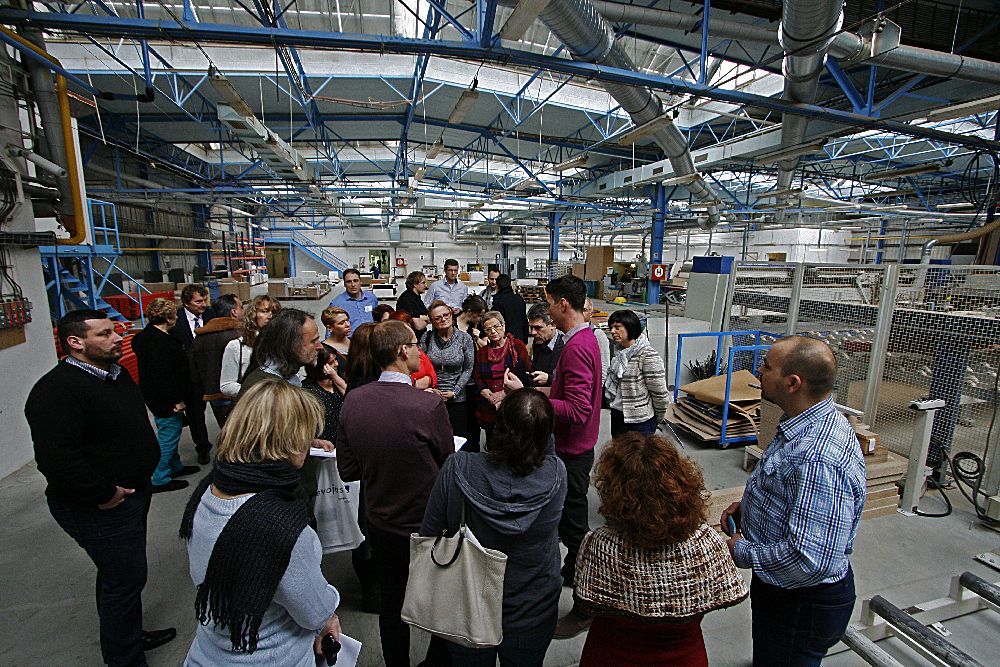 Výroba je z velké části plně automatizovaná a řídí se podle čárových kódů tak, aby bylo co nejvíce eliminováno možné výrobní pochybení. Prohlídka výroby začínala u skladu velkoplošných materiálů, dřevotřískových a MDF desek, odkud materiál míří k formátovací pile. Během následujícího roku dojde ve výrobě k jedné z posledních finančně velmi náročných inovací, vybudování tzv. chaotického skladu, který výrazně napomůže jak úspoře volného prostoru, tak rychlosti a flexibilitě samotné výroby.