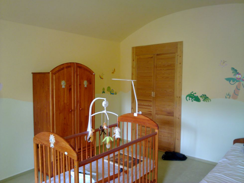 Z postýlky bude mít miminko nejlepší výhled na strop – chcete-li zachovat strop bílý, zavěste nad postýlku hrací kolotoč. Barvy v pokojíčku volte v odstínech světle modré, světle růžové nebo světle zelené. Stěny pak šikovný profesionál vymaluje Vámi vybranými obrázky zvířátek, pohádkových postaviček nebo květinkami.