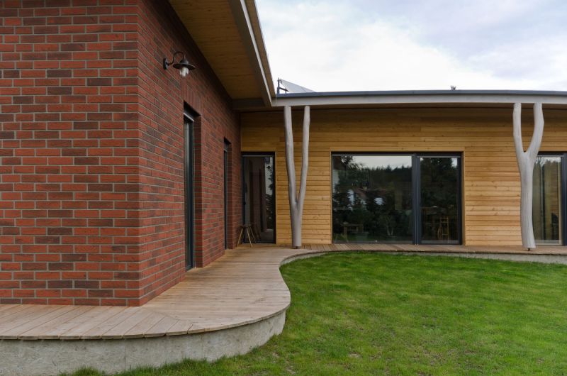 | Fasáda: | cihlové obkladové pásky a vodorovný modřínový obklad |