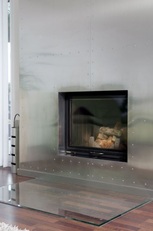 V případě nárazového ochlazení a také pro příjemnou atmosféru zatápíme v krbu. Komín jsem navrhl z liaporových tvárnic a obklad vložky z kvalitního nosného a tepelněizolačního materiálu, podle mě neuvěřitelných parametrů (pevnost v tlaku 15 MPa, tepelná vodivost při teplotě 400°C je 0,08 W/(m.K)), takže ani při velkém žáru obklad teplo nepropouští a obkladový nerezový plech zůstává studený. Občas nám ale při přikládání krb „bouchnul", přestože má zvenku nasávání a komín máme vyšší, než je u bungalovů obvyklé. Dodatečně jsem proto pro zvýšení odtahu zabudoval do komína generátor tahu, který ovládáme spínačem, když potřebujeme zvýšit intenzitu proudění spalin a vzduchu. Krb nám od té doby funguje perfektně.