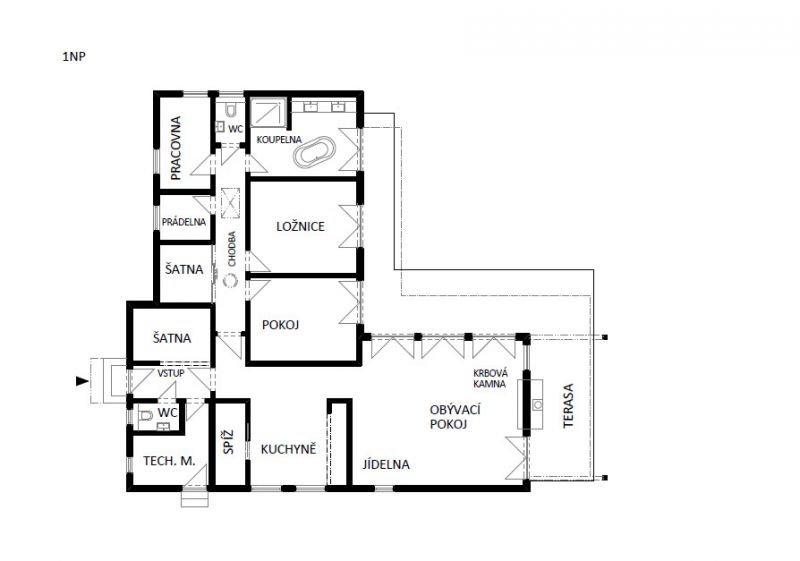 | Vytápění: | elektrokotel s podlahovým teplovodním vytápěním, krbová vložka na dřevo, vzduchotechnika s rekuperační jednotkou |