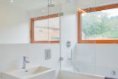 Chtěli jsme použít co nejvíce místních materiálů a využít práce místních řemeslníků. Modřín na fasádě pochází z pily pět kilometrů odsud, kamenná dlažba v koupelně je z lomu nedaleko Mariánských lázní a rozhozenou dubovou kantovku na podlaze pokládali místní podlaháři. Kámen ze zvětralé skály získaný při úpravách dvora byl použit pro výstavbu kamenného plotu a venkovní dlažbu. Krbová kamna si investor přivezl ze svého domu v Německu. Vytápíme elektrickými rohožemi ve stropě a krbovými kamny. Také jsme museli vybudovat samostatnou čističku.