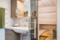 Další z vlastností, které měla stavba splňovat, byla bezbariérovost a energetická úspornost. Výsledkem je přízemní dřevostavba, jejíž tepelné ztráty se blíží pasivnímu domu. Dispozice obsahuje pouze to nejnutnější – obývací pokoj s kuchyní, ložnici, pracovnu, šatnu a saunu. Dominantní a nejvyšší hmotou domu je garáž, kde má svoje místo obytné auto – partner pro naše cestovatelské výpravy. Jelikož jsme vyměnili třípodlažní dům za bungalov, museli jsme prostor daleko důkladněji promýšlet. Dostatečné úložné prostory jsou základem. Skvělý je například sklad vedle garáže, kde najdou svoje místo věci používané jednou za čas. Je důležité myslet na to, kam dám lyže, potřeby pro údržbu zahrady nebo květiny na přezimování.