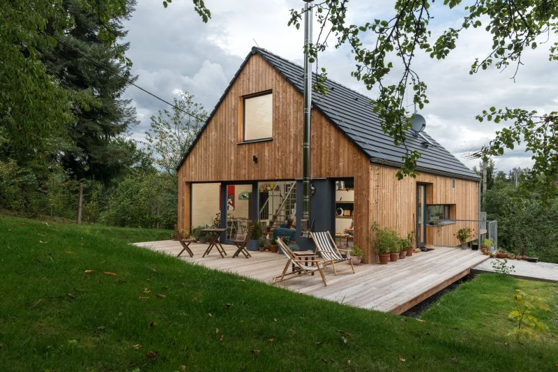Nemůžu říct, že bychom chtěli od počátku dřevostavbu, naše představy nás ale k této technologii posunuly. Věděli jsme, že nechceme dům na rovině, taky jsme chtěli dřevo na fasádě. Další podmínkou bylo otevření hlavního obytného prostoru do krovu – zamilovali jsme se do tohoto řešení v domě našich přátel v Bavorsku. Jedním z důležitých faktorů byly i finance, které nás tlačily k typovým domům. Když jsme pak na veletrhu Dřevostavby viděli Futuru Freestyle a Domesi nám nabídlo strávit slunečný víkend „na zkoušku“ v Pulečném, bylo okamžitě rozhodnuto.