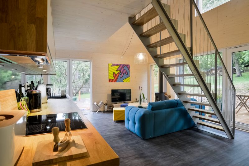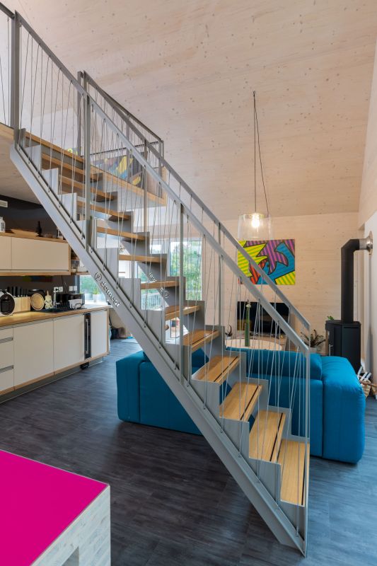 Kdybychom stavěli znovu, změnili bychom velikost horního pokoje. Sádrokartonová příčka by mohla být posunutá o metr a půl blíže k zábradlí, protože prostor před ateliérem stejně slouží spíše jako galerie. Také se nám v létě občas přehřívá interiér, jelikož se jedná o nákladnou investici, i když máme přípravu na venkovní žaluzie, kastlíky jsou zatím prázdné.