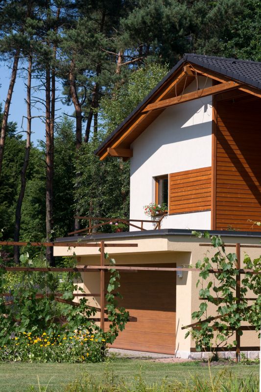 Fasáda: kontaktní zateplovací systém s omítkou a dřevěný