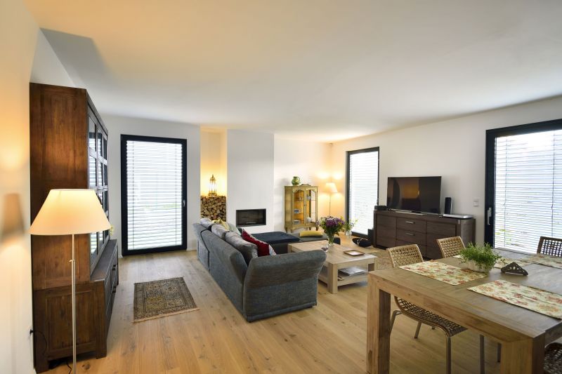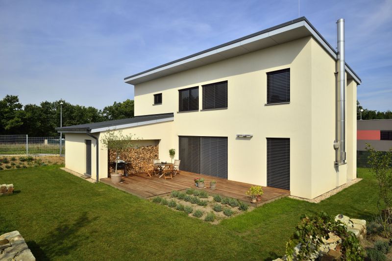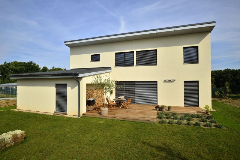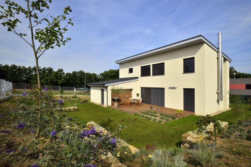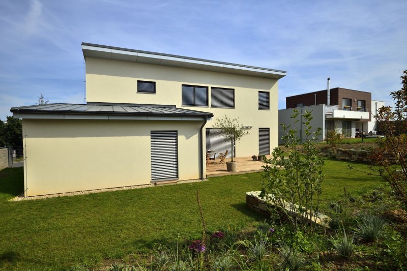 Nakonec jsme zvolili pod dřevěnou třívrstvou podlahu teplovodní podlahové vytápění, zatím ale nemůžeme posoudit, jak bude fungovat, protože dosud nebylo třeba topit. Chtěla jsem bohatě provázaný interiér s exteriérem, vzhledem k významným tepelným ziskům máme velké prosklené plochy orientované na jih, v létě je stíníme exteriérovými žaluziemi. Ještě nám schází vysouvací markýza, pro kterou je stavba připravena. Celkově zahrada, terasa a krb, který máme v obývacím pokoji, je pro panelákového člověka luxus, kterého se zatím nemohu nabažit.