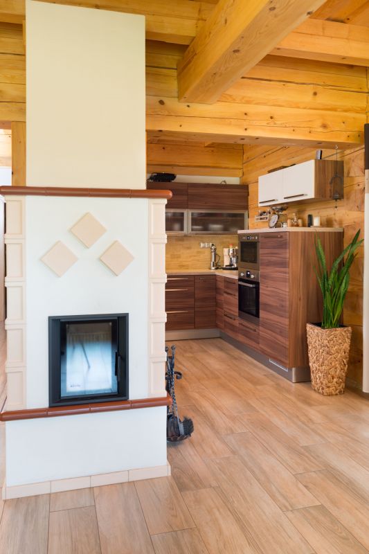 Topení: podlahové topení, elektro kotel a krbová kamna
