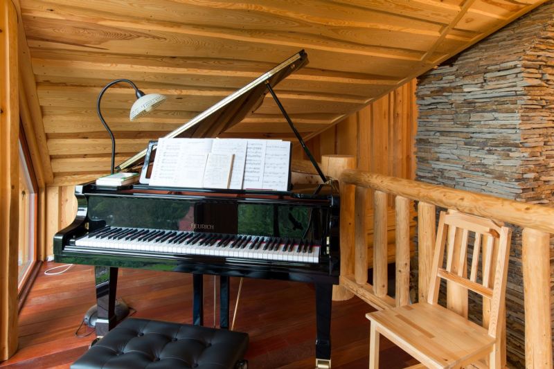 Potvrdily se nám informace o dobrých akustických vlastnostech dřeva vzhledem k naší volbě umístění klavíru na horní galerii. Zatímco ve zděné stavě by se při takovém umístění zvuk piána nepříjemně lámal a odrážel o stěny, ve srubu se nese tlumeně a příjemně. Stejně tak jsem spokojeni s energetikou domu v zimních i letních měsících. Ani při těch nejvyšších venkovních teplotách tady vedrem netrpíme a v zimě se stavba rychle vyhřeje a potom dobře udržuje.