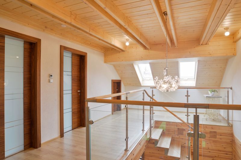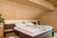 Obvodové stěny jsou dvouplášťové z lepených trámů se spoji na rybinu, mezi nimi je konopná izolace. Šli jsme touto cestou zateplení a jsme rádi, protože roubenka získala opravdu dobré izolační vlastnosti, nedochází k profukování stěn a plné trámy vidíme i z interiéru, kde jsme si nepřáli mít jen palubkový obklad. Stěna je z vnější i vnitřní strany z borovice, která má sice více suků, ale konstrukci domu jsme chtěli mít bytelnější, ze dřeva s větší životností, než má smrk. Strop a celé podkroví máme obložené smrkovým dřevem, kde jsme do první vrstvy laku nechali jemně namíchat bílou barvu. Jednak se nám bělené dřevo líbilo už z katalogů a zároveň jsme se chtěli vyhnout tmavnutí interiéru, ke kterému dochází při stárnutí dřeva. Také další zařízení jsme vybírali ve světlém odstínu, abychom tady nevytvořili temný prostor.