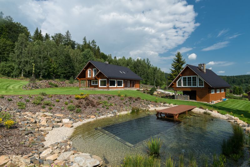 Pozemek jsme sháněli šest let. Až náhodou jsem zajel za svým zákazníkem sem do Jeseníků, trochu s představou o zapadlém konci světa, ale byl jsem nadšený. Každý říká, že je to tady jako v Rakousku nebo Švýcarsku, i příkopy jsou vysečené! Celá vesnice je nová, roubených staveb tu stojí víc, všichni mají upravené zahrady, placený člověk seče trávu, v zimě odhrnuje sníh. A žijí zde příjemní lidé. Zpočátku jsem nemohl pochopit, že když jsme tady zapadli náklaďákem, najednou soused přijel se štěrkem a lopatou a říkal – vidím, že se tu trápíte. Pak mu třikrát vyplavil kurt přívalový déšť, bahno mu nateklo až do restaurace, takže celá obec v noci vymetala. Jen my ne, protože tady ještě natrvalo nebydlíme, tak jsme pak museli aspoň koupit pivo. To si v současném bydlišti neumíme představit. Složení obyvatel je na stejné hladině, všichni jsme naplaveniny, každý je odjinud, a proto jsme si možná nějak bližší a vzájemně si pomůžeme. Máme skutečně normální sousedy a o to je zde život příjemnější.