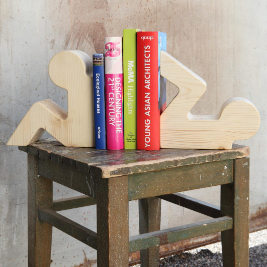 Zarážka do knihovny z masivního dřeva a barevné textilní kabely od firmy Domesi