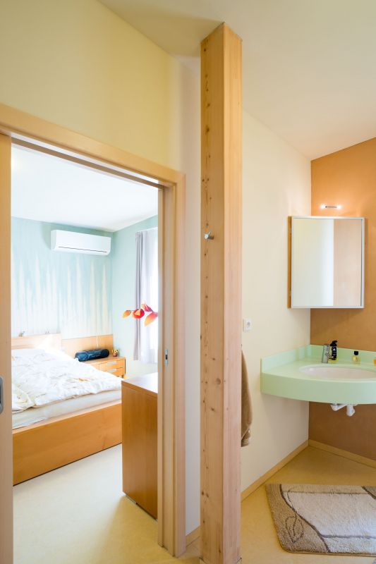 Ohřev teplé vody zajišťuje teplovodní solární kolektor umístěný na střeše a topná spirála uvnitř boileru využívaná zejména v zimě, kdy slunce tolik nesvítí. Zásobník na 800 litrů vody je v technické místnosti v samotném středu domu a devět měsíců v roce mi skvěle slouží – je totiž dalším zdrojem tepla. Oříškem, který mě dodnes čas od času potrápí, je však situace během letních měsíců, kdy je také nejvíce slunečního svitu a voda v boileru je ohřátá na vysokou teplotu. Zásobník pro takové chvíle nemá dostatečnou izolaci, aby teplo nesálalo do interiéru, právě proto, že většinu roku je tento efekt žádoucí. Dochází proto k přehřívání interiéru. Naštěstí už mám relativně efektivní řešení, kterým teplý vzduch účinně odvádím – otevřu klapku komína spolu s většinou oken a dveří a vzduch tak díky komínovému efektu odvedu ven.