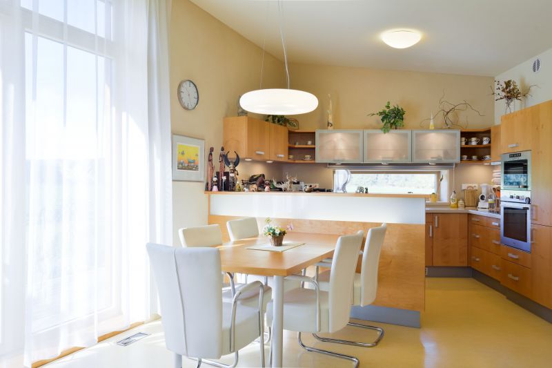 Vytápění: teplovzdušné s řízeným větráním a rekuperací tepla, interiérová teplovodní krbová vložka Domotop 8 - 12 kW bez ohřevu TUV