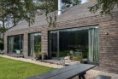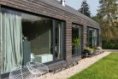 Dřevěná fasáda je použita i na střechu, kde netvoří funkční souvrství střešního pláště, ale kryje střechu z modifikovaných asfaltových pásů i okapový systém. Tím bylo dosaženo maximální hmotové čistoty a jednoduché linie. Dům je obložen smrkem, který je ošetřen tenkovrstvou olejovou lazurou značky Remmers v barvě antracitu. Protože šedá barva do přírody neodmyslitelně patří, když se podíváte od lesa, dům prakticky splývá s krajinou. I když smrk nemá z hlediska životnosti v Čechách úplně dobrou pověst, jsem přesvědčená, že alfou a omegou úspěchu je dobrá povrchová úprava. Volila jsem proto dražší, ale kvalitní nátěr, na který mám kladné reference ze svých cest po Holandsku. Tam je sice tepleji, ale agresivita klimatických podmínek je mnohonásobně horší (sůl a silné větry). S povrchovou úpravou jsme maximálně spokojeni.