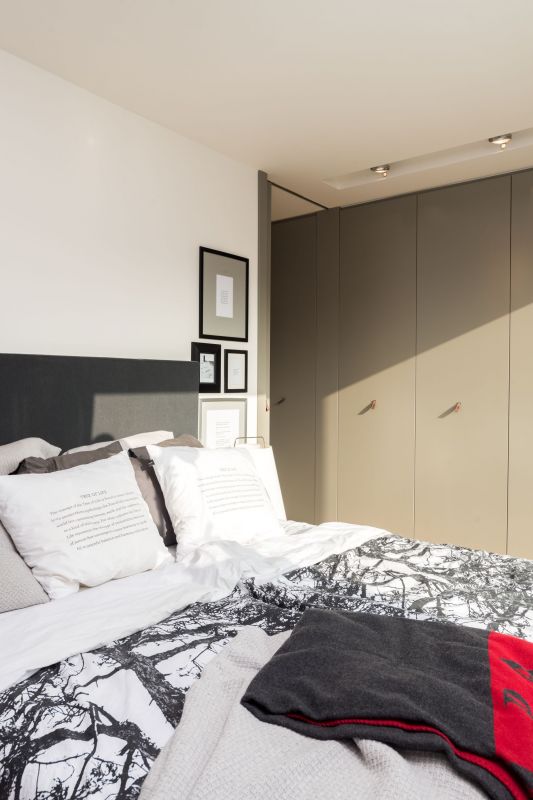 S manželem spolu žijeme už třináct let, takže z hlediska interiérového uspořádání nebylo co řešit. Věděli jsme přesně, co potřebujeme, co máme rádi a jak fungujeme. A že potřebujeme opravdu hodně úložných prostor. I z tohoto důvodu je veškerý nábytek dělaný na míru tak, aby byl chytře využit každý centimetr. V interiéru vzniká jakýsi nábytkový monolit, přesto nemáte pocit, že byste žili v šatně.