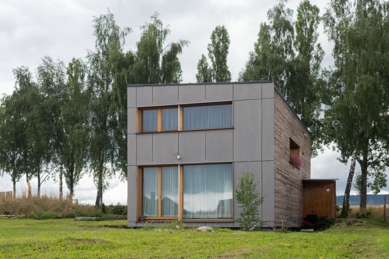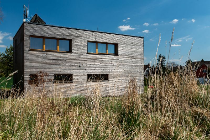 Úplně na počátku jsme měli představy o klasickém domě se sedlovou střechou, terasou a balkónem. Čím více jsme však probírali energetické zákonitosti, jevil se jako výhodnější a praktičtější jednoduchý kvádr. Rychle jsme pochopili, že bez některých věcí se snadno obejdeme, a změny jsme vnímali spíše jako posuny k lepšímu. Navíc nás se ženou více zajímalo, jak se v domě budeme cítit, nežli to, jak bude vypadat pro kolemjdoucí. Výsledkem je tedy jednoduchý dvojpodlažní objekt s plochou střechou, jehož nosnou konstrukcí jsou panely z vrstveného masivního dřeva Novatop a masivní trámy.