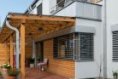 Fasáda: kombinace omítky a modřínové provětrávané fasády s olejovým