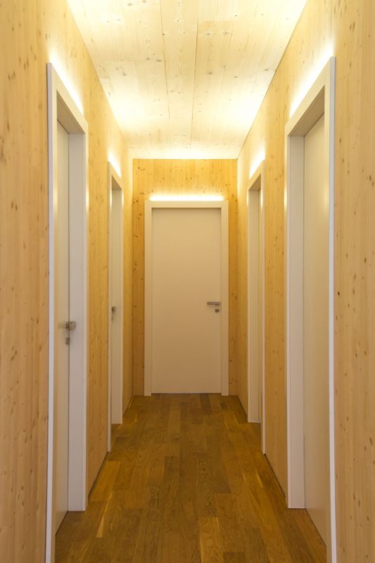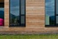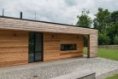 Skladba stěny: 100 mm CLT panel, 200 mm minerální vata / difuzní folie, 50 mm provětrávaná mezera, 20 mm dřevěný obklad