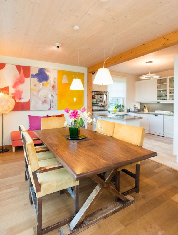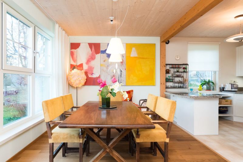 Dnes bych ovšem volila menší okna. Byli jsme lační po světle, slunci a výhledech, stejně tak jsme neustále řešili dostatečnou izolaci, aby v domě nebyla zima. Nakonec máme úplně opačný problém – přehřívání. V létě sem totiž z východu již brzy ráno svítí slunce a interiér dost vyhřeje. Okna nejsou opatřena stínící technikou, protože se nám žádný typ nelíbil a horká léta posledních let dělají svoje. Naštěstí je to jen otázka dopoledne, během dne je v domě již příjemněji, navíc se to prozatím týká jen pár dní v roce. Další drobnou nevýhodou velkých oken je, že zbývá málo plných stěn, ke kterým bychom mohli umístit nábytek nebo něco pověsit. Ovšem jsou to drobnosti.