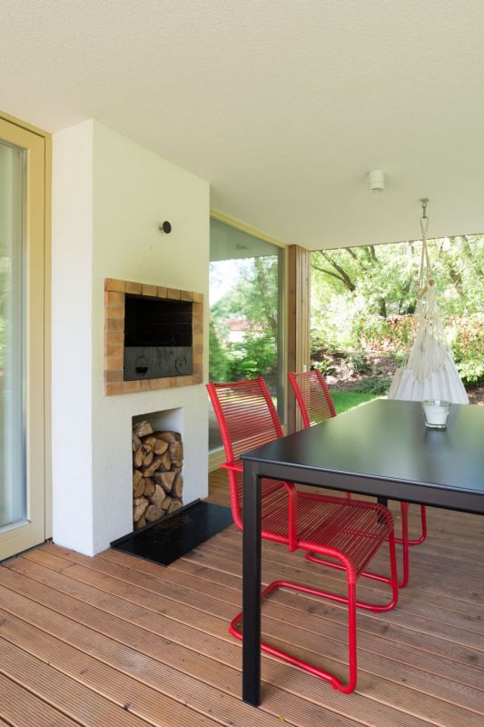 Perfektní je kryté venkovní posezení, kde je také krb. Když je chladněji, je to úplná idylka – jsme chráněni před větrem a navíc se ohřejeme u ohně.
