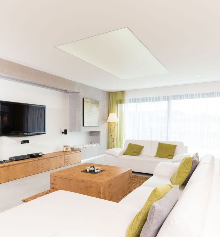 Zvolili jsme cestu důkladného zateplení domu – pasivní stěny, zamezení přehřívání domu pomocí předokenních žaluzií a předsazené střechy, která kryje v létě dětské pokoje a ložnici od přímého svitu. Jelikož máme rádi otevřený prostor na zahradu (kromě zimy), nevyužili jsme systém řízeného větrání – rekuperace - už kvůli vyšším pořizovacím nákladům a jeho návratnosti v řádu několika let (během výstavby nebyla vyhlášena Zelená úsporám). V první fázi jsme tedy zůstali u elektrokotle s přípravou pro tepelné čerpadlo. Výsledkem přesto zůstává velmi nízká spotřeba energie v zimním období. V letním období během nejteplejších dnů zase teplota nepřesáhne 25 °C. Dům řídí inteligentní systém LOXONE, který nám kontroluje a řídí teplotu domu společně s CO2. Tento inteligentní systém perfektně zapadá do koncepce užívání našeho domu, protože jedním dotekem na ipadu dokážu například zavřít čtyři předokenní žaluzie, zapnout atmosféru „relax", která se skládá z 11 různě nasvícených světelných okruhů, a v klidu se můžu posadit u televize či knížky. Konečnou atmosféru dotváří krb na biolíh s keramickou vložkou, který v zimě umí v místnosti během chvíle zvednout teplotu až o čtyři stupně.