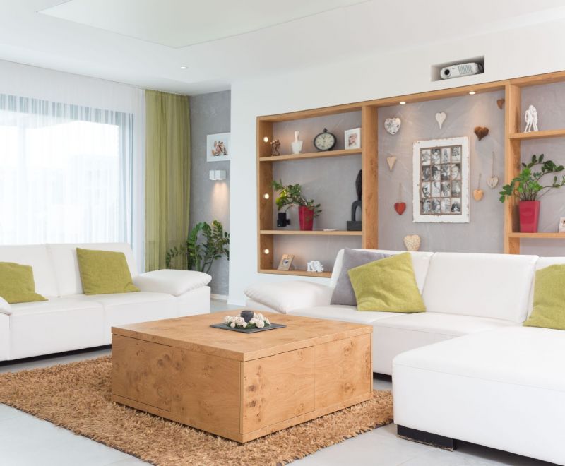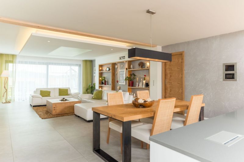 Předchozí dům byl dvoupatrový, tentokrát jsme šli do přízemního. Od narození prvního dítěte jsme využívali ohrádku u schodiště, zóna horního patra byla pouze noční a nebyla využita jinak než ke spánku. V tomto domě jsou všechny prostory vzájemně mnohem více propojeny a využity.