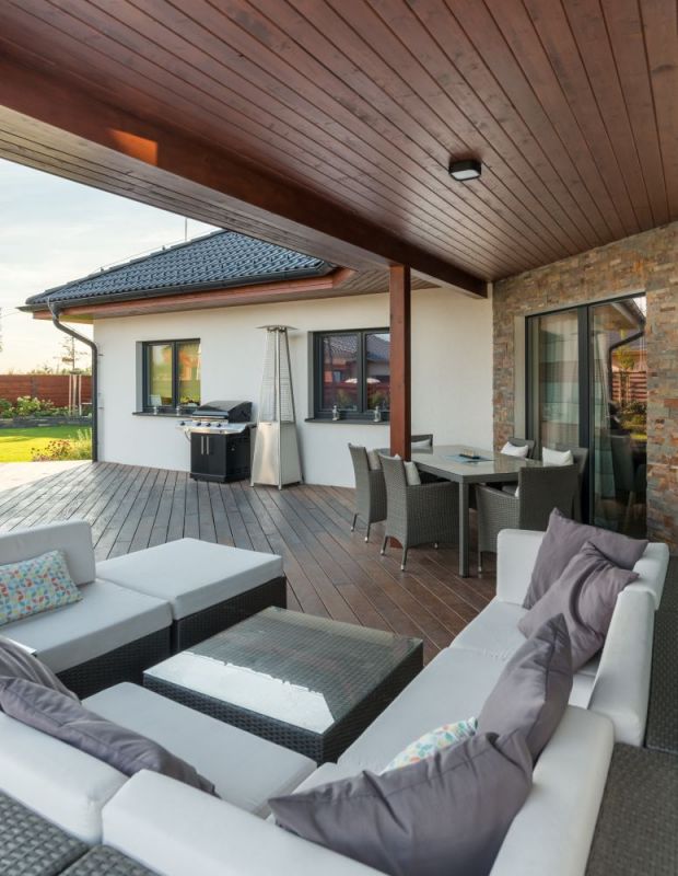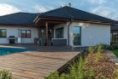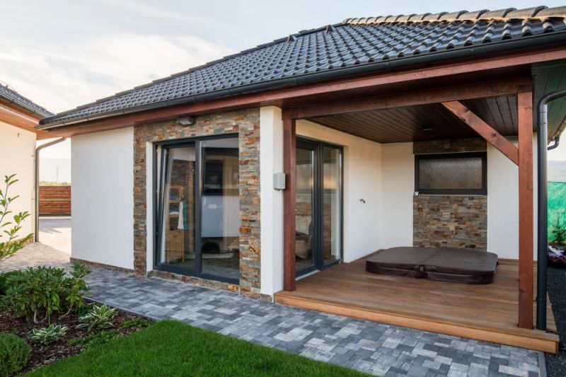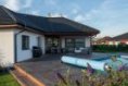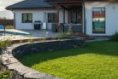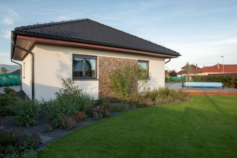 Důležité pro nás bylo propojení vnitřního obývacího prostoru s terasou s vyhřívaným bazénem. Celý den je kam si sednout do stínu. Na pomoc jsme si při plánování vzali program, který umožňuje nasimulovat, kam svítí slunce v průběhu celého roku, v kteroukoli denní dobu. Posuvná francouzská okna na terasu máme otevřená prakticky stále, což bylo i jedním z důvodů, proč jsme stavěli dům v nízkoenergetickém a nikoli pasivním standardu. Druhým důvodem bylo to, že jsme měli důvěru ve stavební konstrukci, která pro nás i v „jen" nízkoenergetickém provedení funguje výborně.