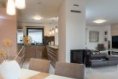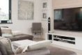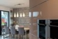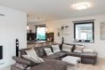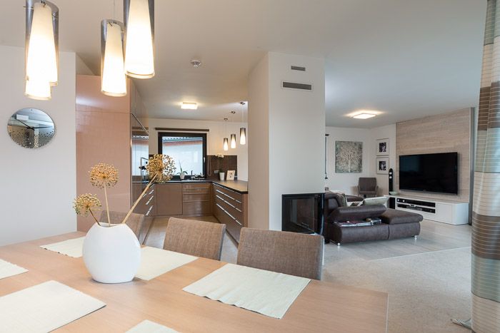 Obývací pokoj v jednom otevřeném prostoru s kuchyní a jídelnou jsme zvolili proto, aby Kamila nebyla zavřená v kuchyni. Trvali jsme na velkém jídelním stole, sami jsme si ho navrhli a konstrukci nechali vyrobit ve vlastní továrně na zpracování tenkých plechů. Ale dnes je stejně hlavní komunikační zónou barové sezení na pomezí obývacího pokoje a kuchyně – snídaně, svačiny a někdy i večeře se odehrávají právě tady.
