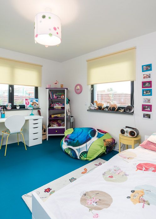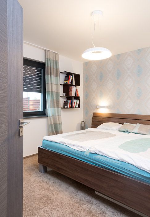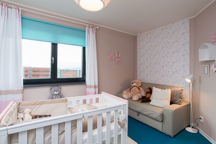 V celém domě je podlahové topení. Nejprve jsme k němu neměli moc důvěru a považovali jsme je za investici navíc, ale přesvědčilo nás, že lze topit na nižší teplotu a radiátory nezabírají místo. Dnes vlastně vytápíme jen dětské pokoje, v ložnici máme raději zimu, i když s námi spí nejmladší měsíční dcera.