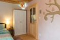 S pomocí šikovných rukou místního truhláře jsme značnou část nábytku v interiéru vytvořili z původních krovů. Co šlo, jsme použili. Dubové trámky kolem krbu a v nikách jsme jen přiřízli na správný rozměr, okartáčovali a ponechali bez další vnější úpravy. Z téhož materiálu jsou i lavice a dvířka. Manželská postel sesazená na rybinu, pracovní stůl a konferenční stolek jsou z kartáčovaných smrkových trámů. Každý prvek v interiéru má svůj příběh, nic tu není samoúčelné.