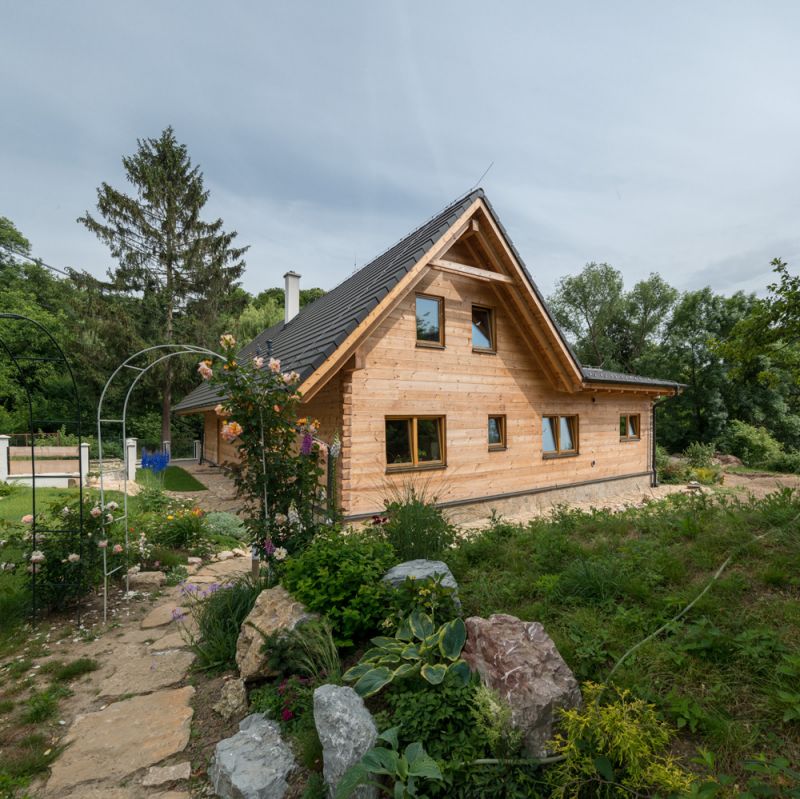 V zapadlé vísce nedaleko slovenské Nitry vyrostl roubený dům, pro jehož majitele hrají nejdůležitější roli energetické vazby a celkový soulad. Zuzanu a Zola inspirovaly oravské dřevěnice, dispozice domu však vychází z potřeby skloubit tři témata, kolem nichž se točí život tohoto manželského páru: soukromí, práce a časté návštěvy hostů, včetně odrostlých dětí s vnoučaty. Zcela přirozeně se v něm mísí staré s novým i místní s cizím. Velký důraz je tu kladen na přírodní materiály.