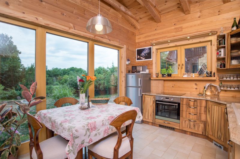 Roubení není ničím napuštěné ani nalakované. Zpočátku nás k povrchové úpravě přesvědčovali, teď už ne. Dřevokazných organismů se nebojíme. V budoucnu možná dřevo napustíme nějakým přírodním materiálem, ale borovice je mastná, obsahuje tolik smůly, že zatím to tak asi necháme. Máme rádi, jak stěny dýchají. Místní nás také varovali, že 24 cm silné stěny určitě nebudou dostatečně izolovat a měli bychom je obložit. Ale zkušenost dala za pravdu nám. Topíme jen krbem a na zimu nám stačí patnáct kubíků dřeva.