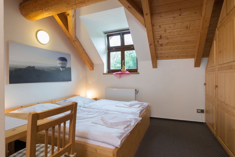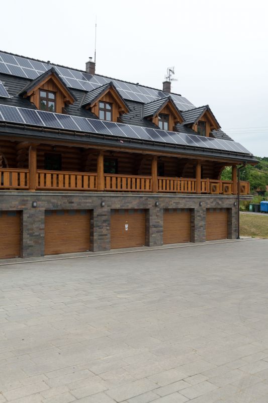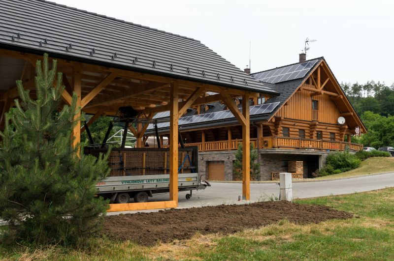 Většina plochy pozemku o rozloze 10 000 metrů je rovná a určená pro starty balónů. Svažitá část se pak nabízela pro stavbu srubu se suterénem pro garáže a technickým zázemím pro penzión i pro balóny. V suterénu je i sociální zařízení pro kemp – máme tu prostor, kde může zaparkovat pár karavanů, sám s karavanem jezdím, takže jsem to chtěl umožnit i hostům. Část pozemku je pak připravena i pro ty, kdo si chtějí užít pobytu v přírodě. Najdou tu pergolu s ohništěm, kde si mohou posedět a třeba si něco opéct.