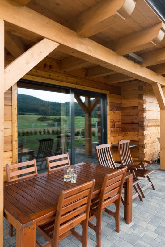 Vždy, když se sem vrátíme, třeba i jen z práce, protože odsud jen neradi odjíždíme na delší dobu, uvědomíme si, jak dům voní. Je to stejné, jako když z hor přijedeme někam do smogu, taky nám teprve potom dojde, jak čistý vzduch jsme na horách dýchali. Dnes, když přijdeme do zděného domu, cítíme rozdíl – nejen v kvalitě vzduchu, ale i ve vlhkosti. Tady, i když jsou v létě vedra a teplota vyšplhá nad 35 °C, teplota uvnitř sice stoupne na 26 – 27 °C, ale zvýší se i vlhkost a je tu vyloženě příjemně. Navíc díky přesahům střechy už odpoledne nesvítí sluníčko dovnitř, končí před terasou. V zimě jsou zase dřevěné stěny na dotek pořád teplé. Nic bychom tu neměnili. Od jara do podzimu trávíme většinu času na terasách, v zimě si rádi posedíme v obýváku nebo u kamen. Všude je nám tu dobře.