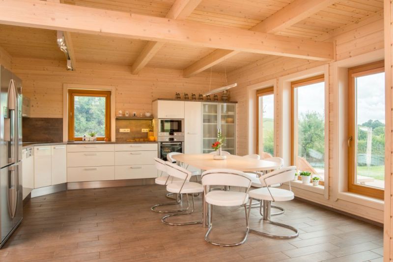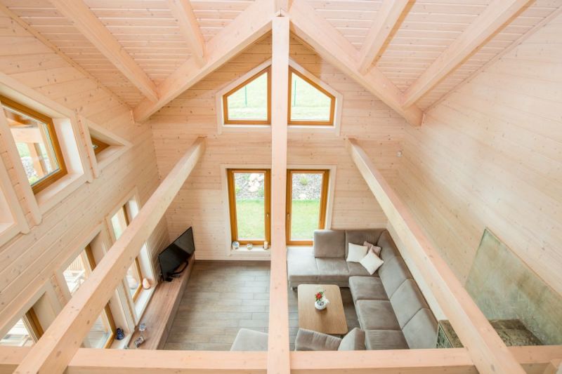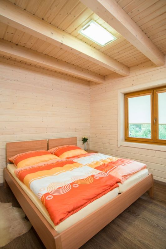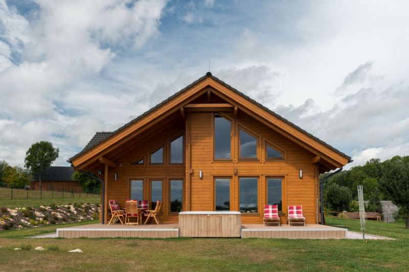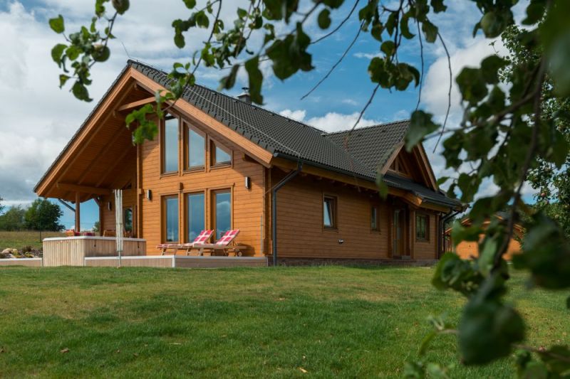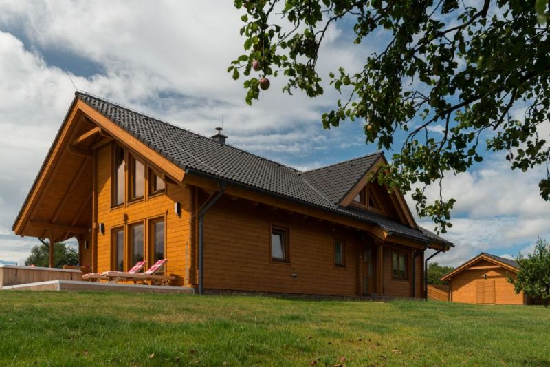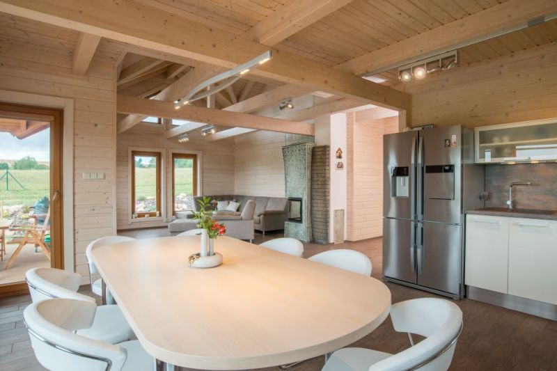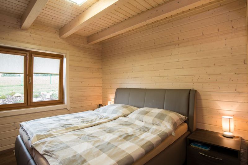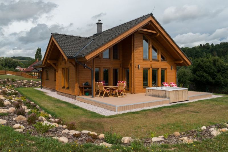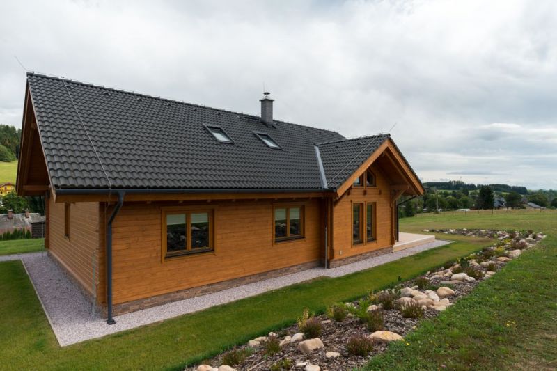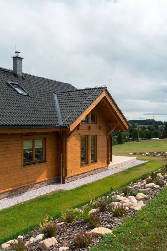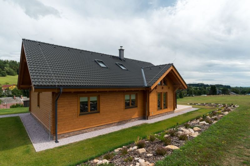 Nechtěla jsem stavět po staru. Toužila jsem po moderní roubence, s novými technologiemi a velkými okny. Přestože se v okolí stavějí spíš repliky původních stavení, ta naše, zejména v pohledu od vesnice, okolí nijak neruší. Navíc stojí dost stranou, na konci vesnice. Nad námi jsou už jen louky a vedle na pozemku vede elektrické vedení, takže tam se stavět ani nedá. Na žádost stavebního úřadu jsme museli jen trošku zvětšit sklon střechy oproti původnímu projektu, na to byli přísní.