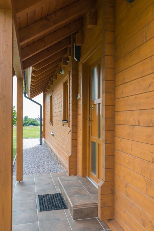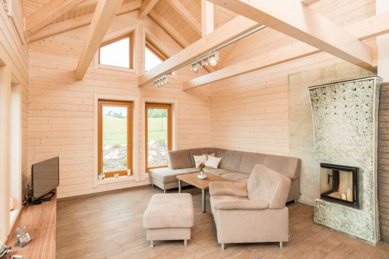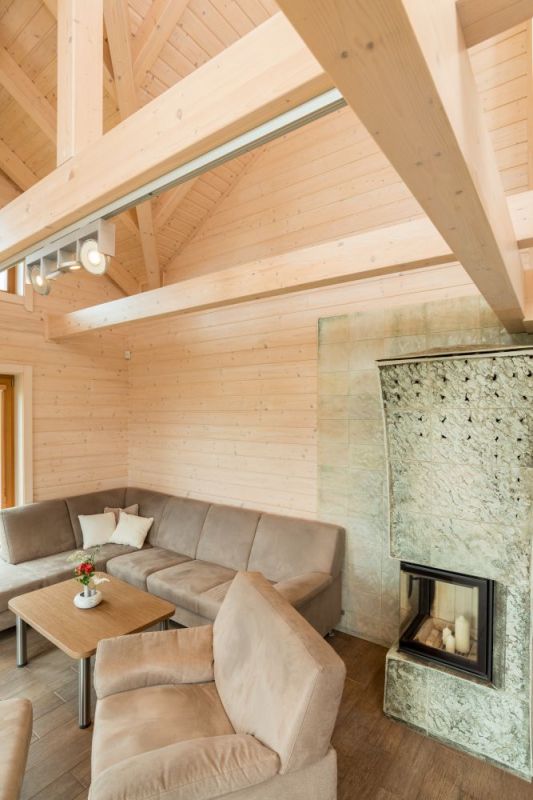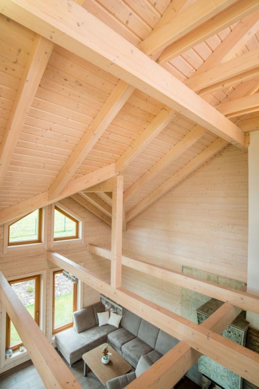 Konstrukční systém: srubová konstrukce z lepených hranolů s dřevěnou izolací a obkladem